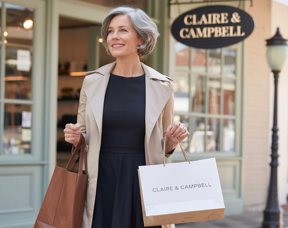 I’m Claire, founder of Claire & Campbell. This brand was born from my journey with my mother, when we realized fashion often forgets women over 50. Everything we found was either too young or too plain. I created Claire & Campbell to celebrate your strength, beauty, and style. Each piece is chosen with love to help you feel radiant, confident, and comfortable.
